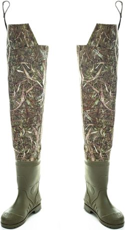 $39.97Nylon hip waders make for a comfortable waterproof fit. The thinner material can be worn under thick or thin hunting pants or even shorts for the early season and teal season hunters in warmer areas like where I hunt in Texas. The waders feature Velcro adjustable belt straps and lightweight PVC boots with a kick lug on the back of the heel for easy on and easy off. All seams are glued and double stitched to keep all moisture out.